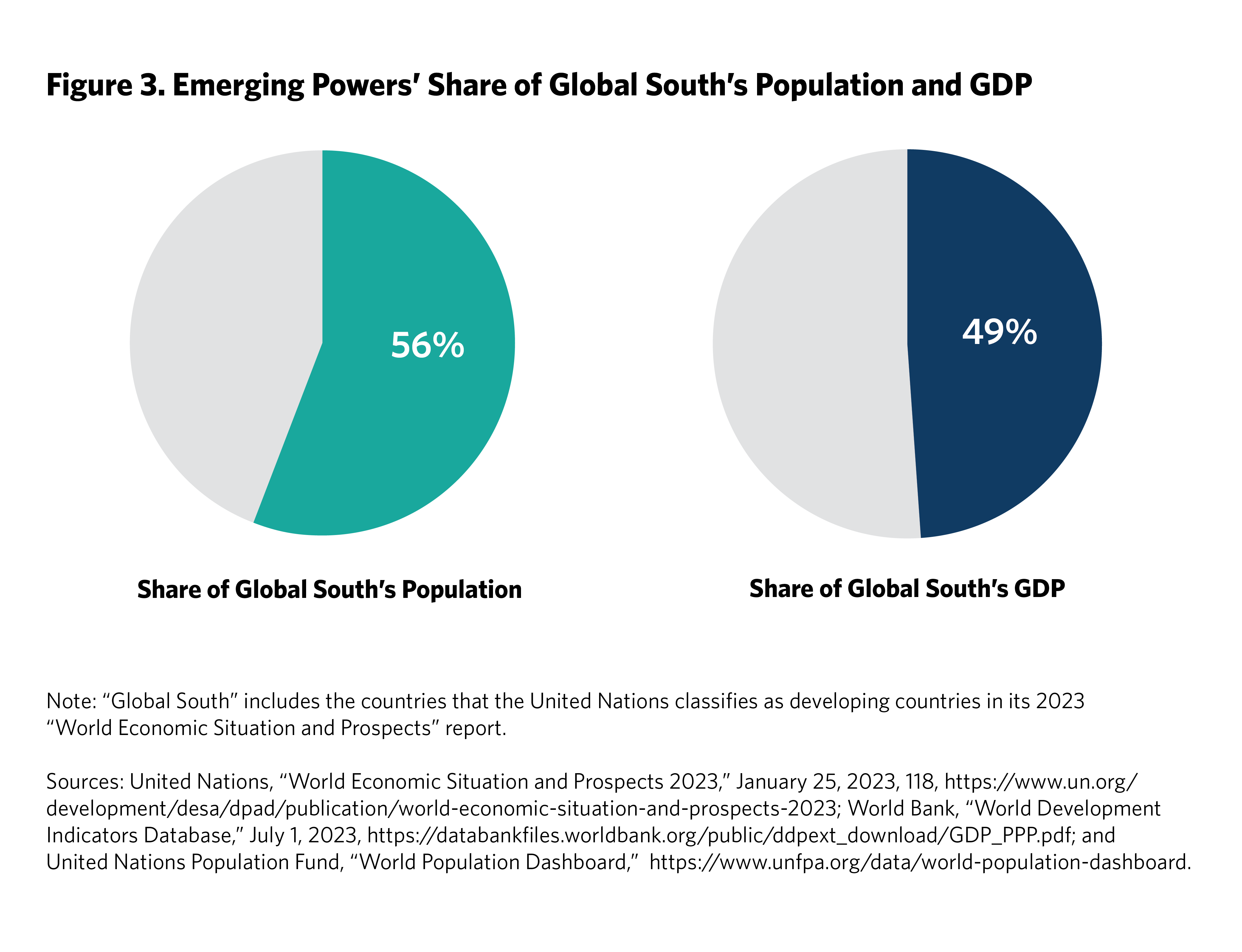1 United Nations Population Fund, “World Population Dashboard,” https://www.unfpa.org/data/world-population-dashboard; and World Bank, “World Development Indicators Database,” July 1, 2023, https://databankfiles.worldbank.org/public/ddpext_download/GDP_PPP.pdf.